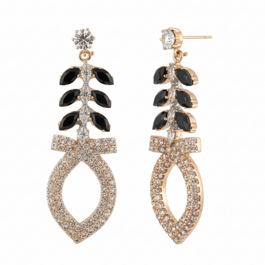 Art Deco Leaf & Pavé Teardrop Earrings - Stainless steel