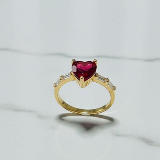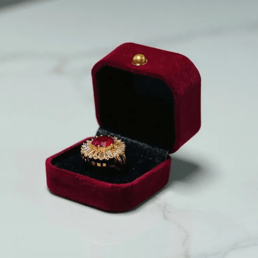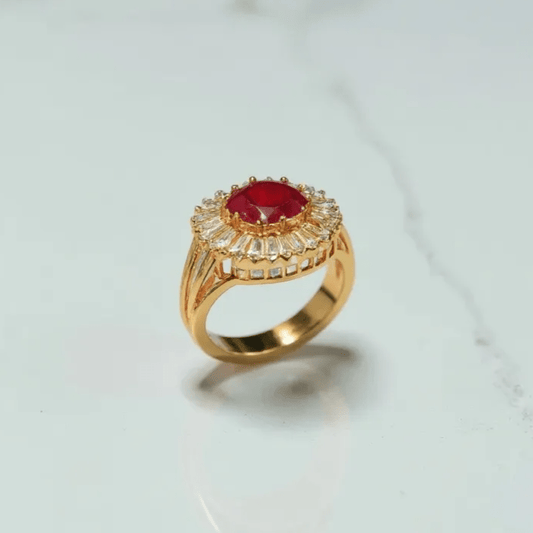 Artificial Ring with Red Gemstone - Stainless steel