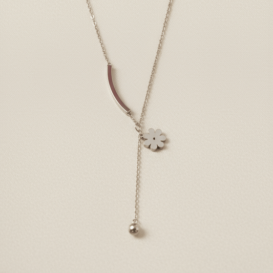 Asymmetric Daisy Drop Lariat Necklace - Stainless steel & Tarnish Free