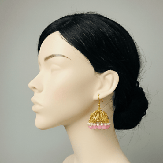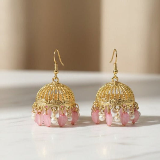 Beautiful Earrings with Pink Beads & Pearl Accents - Stainless steel